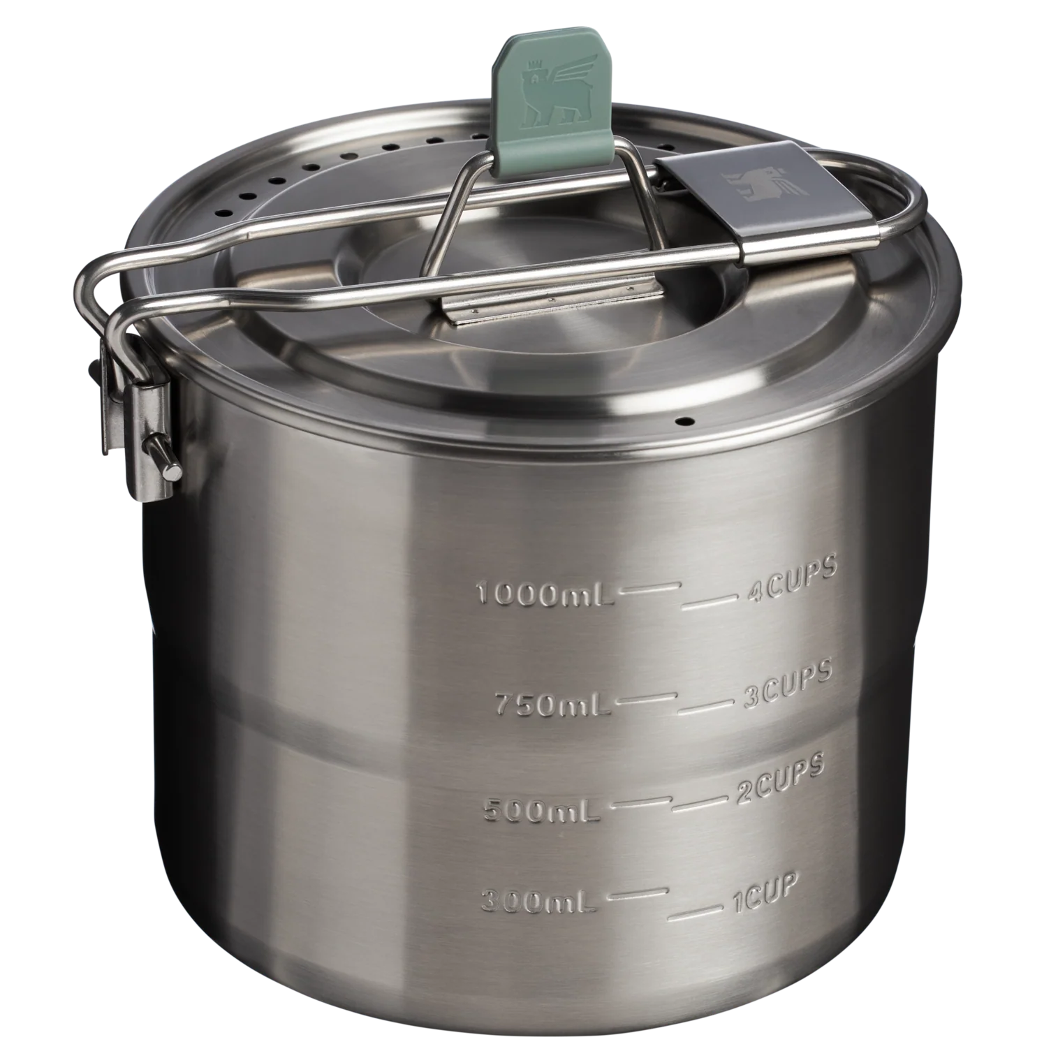 - ویژگیها: دسته قابلمه قفلشونده است؛ یعنی هنگام آشپزی محکم میماند و هنگام حمل روی درب تا میشود تا مجموعه را فیکس نگه دارد. کف قابلمه برای انتقال حرارت سریع روی سرشعلههای کوهنوردی بهینه شده است.