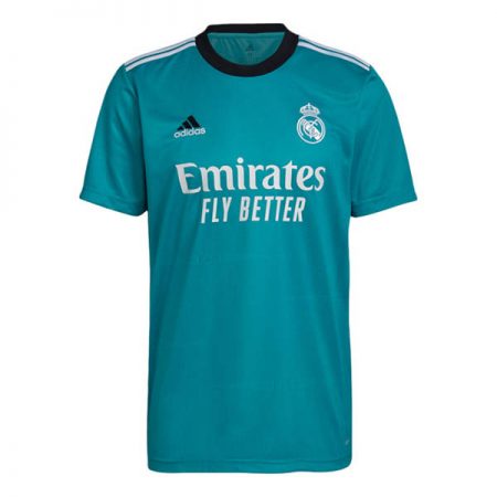 لباس سوم رئال مادرید 2022 فیروزه ای رنگ است و دارای چاپ ظریف دو رنگ سیاه و سفید آرم آدیداس، با الهام از طرح آدیداس EQT از دهه 1990 است. طراحی پیراهن سوم رئال مادرید 2022 از پلاک کیلومتر 0 Puerta del Sol ، در مرکز مادرید الهام گرفته شده است . این پلاک مرکز مادرید و اسپانیا را نشان می دهد و نقطه ای است که جاده های کشور از آنجا اندازه گیری می شوند. با الهام از این پلاک، کیت سوم آدیداس رئال مادرید 21-22 دارای طرحی با “سوزن های قطب نمای ظریف ” و یک آرم خاص در داخل یقه  است. رنگ رسمی پیراهن سوم رئال مادرید 2022  “Hi-Res Aqua” است ، رنگی که آدیداس در چند سال گذشته از آن استفاده کرده است. یک یقه مشکی ساده با طرح ملوانی، ظاهر جذاب لباس سوم فوتبال رئال مادرید 2021-2022 را در کنار مارک‌ها و لوگوهای سفید آدیداس، کامل می‌کند.