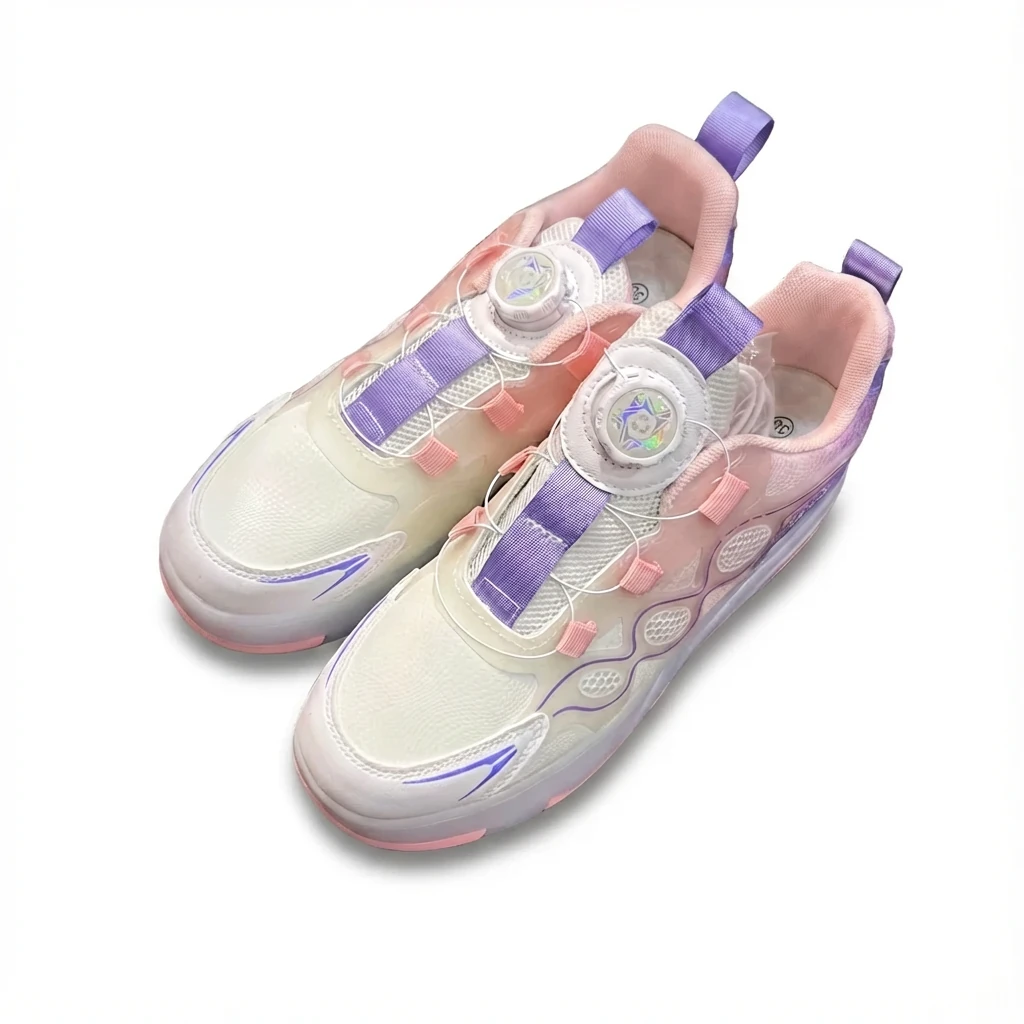 اگر دنبال یک کفش شیک، سادهتر از مدلهای فانتزی کارتونی ولی همچنان پاستلی، جذاب و چشمگیر هستی، این کتونی چرخدار دخترانه سفید–صورتی–بنفش یکی از بهترین گزینههاست. طراحی نرم و مینیمال پاستلی در ترکیب با ساختار اسپرت و مدرن، این مدل را به یک انتخاب ایدهآل برای استفاده روزمره تبدیل کرده است.