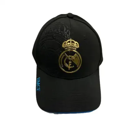 کلاه کپ فوتبالی رئال مادرید مشکی لوگو طلایی با سایز قابل تنظیم