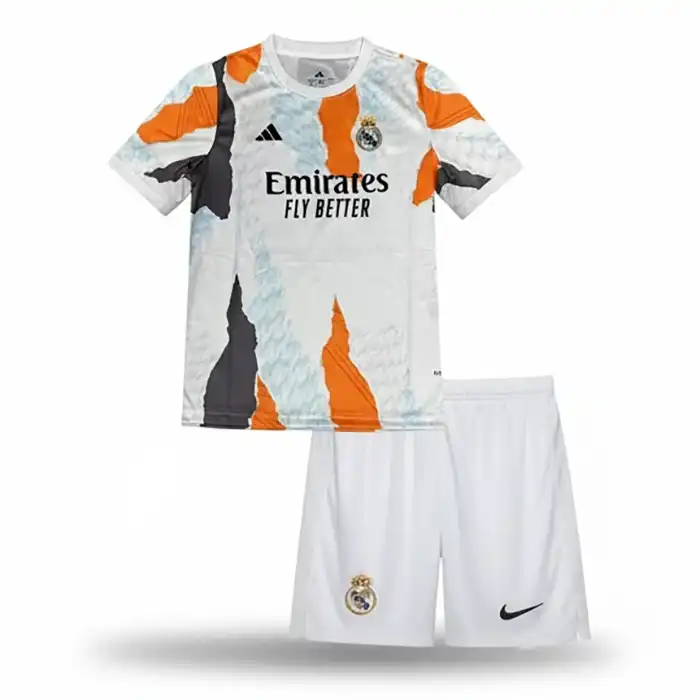 کیت پیش مسابقه 2025 رئال مادرید با طراحی گرافیکی جسورانه و خیرهکننده که به طرح “ابروبادی” معروف است، دقیقاً همین حس را منتقل میکند. این ست با ترکیب رنگهای پرانرژی نارنجی، آبی روشن و خاکستری، فرزند شما را به کانون توجه در زمین بازی تبدیل میکند. این محصول ویژه، جایگاه خاصی در مجموعه لباس فوتبال رئال مادرید ما دارد و برای کودکانی که فوتبالیست شدن را در سر دارند، بهترین انتخاب است.