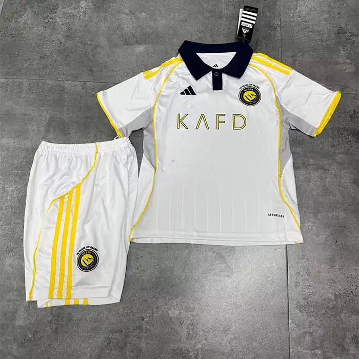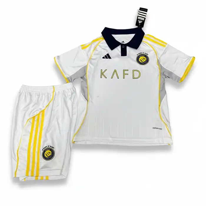 با کیت یادبود 70 سالگی باشگاه النصر، فرزند خود را به کریستیانو رونالدو و تاریخ پرافتخار این باشگاه نزدیکتر کنید. این ست، که به مناسبت هفت دهه افتخارآفرینی طراحی شده، با ترکیب رنگ سفید کلاسیک، یقه پولو سرمهای و جزئیات طلایی، نمادی از اصالت و شکوه است. این لباس فراتر از یک محصول ورزشی، یک قطعه کلکسیونی و ارزشمند در میان مجموعه لباس فوتبال بچگانه فروشگاه ما به حساب میآید.