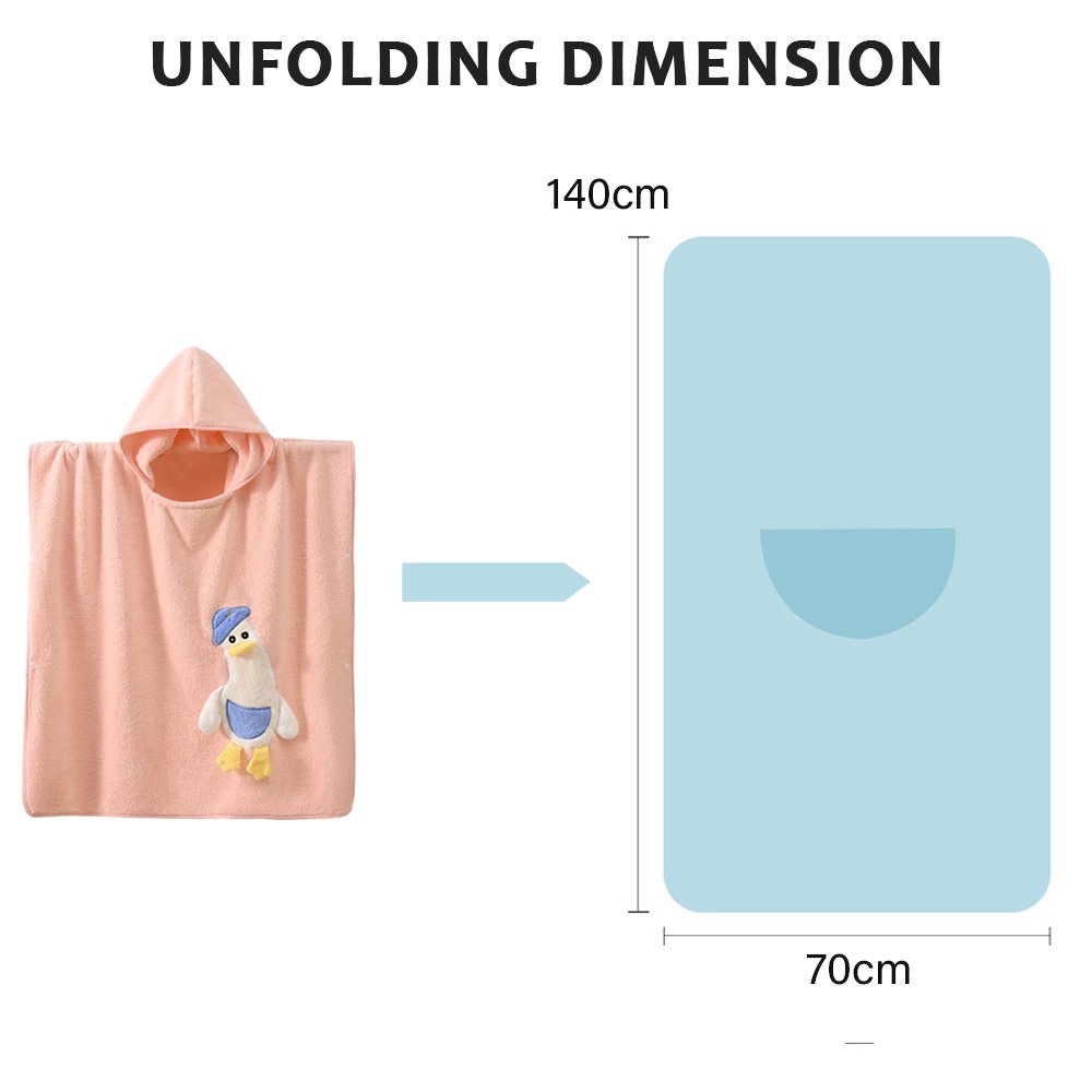طراحی پانچویی کلاهدار باعث میشود کودک بهراحتی حوله را بپوشد و همزمان سر و بدنش خشک بماند. رنگ صورتی ملایم با ظاهر کودکانه، انتخابی محبوب برای استفاده در خانه، استخر، مهدکودک و سفر است.