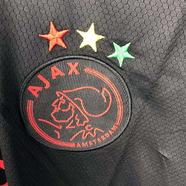 پیراهن سوم آژاکس 2022 به باب مارلی و آهنگ پر زرق و برق او اختصاص دارد: کاملا مشکی با لوگوهای قرمز ، به جز سه ستاره زیر نماد. همچنین برای یقه و سه خط آدیداس روی شانه از سه رنگ قرمز ، زرد و سبز استفاده شده است که رنگ Rastafarianism است. و در پشت پیراهن ، زیر یقه ، سه پرنده کوچک برای ادای احترام به باب مارلی بزرگ.