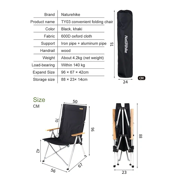 صندلی دسته دار نیچرهایک مدل aluminum alloy folding lying chair