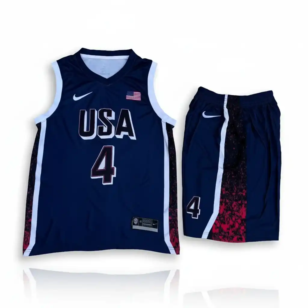 با این ست بسکتبال منحصربه‌فرد، بخشی از تاریخ پرافتخار تیم ملی آمریکا باشید. این لباس که با رنگ سرمه‌ای قدرتمند و طراحی مدرن تزئین شده، فراتر از یک کیت ورزشی، نمادی از برتری، کار تیمی و روحیه شکست‌ناپذیر است. این ست برای کسانی طراحی شده که می‌خواهند با غرور، پرچم تیم خود را بر تن کنند.