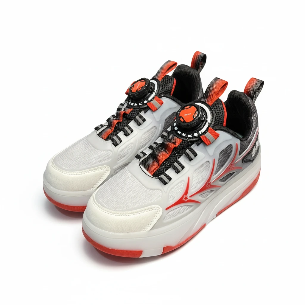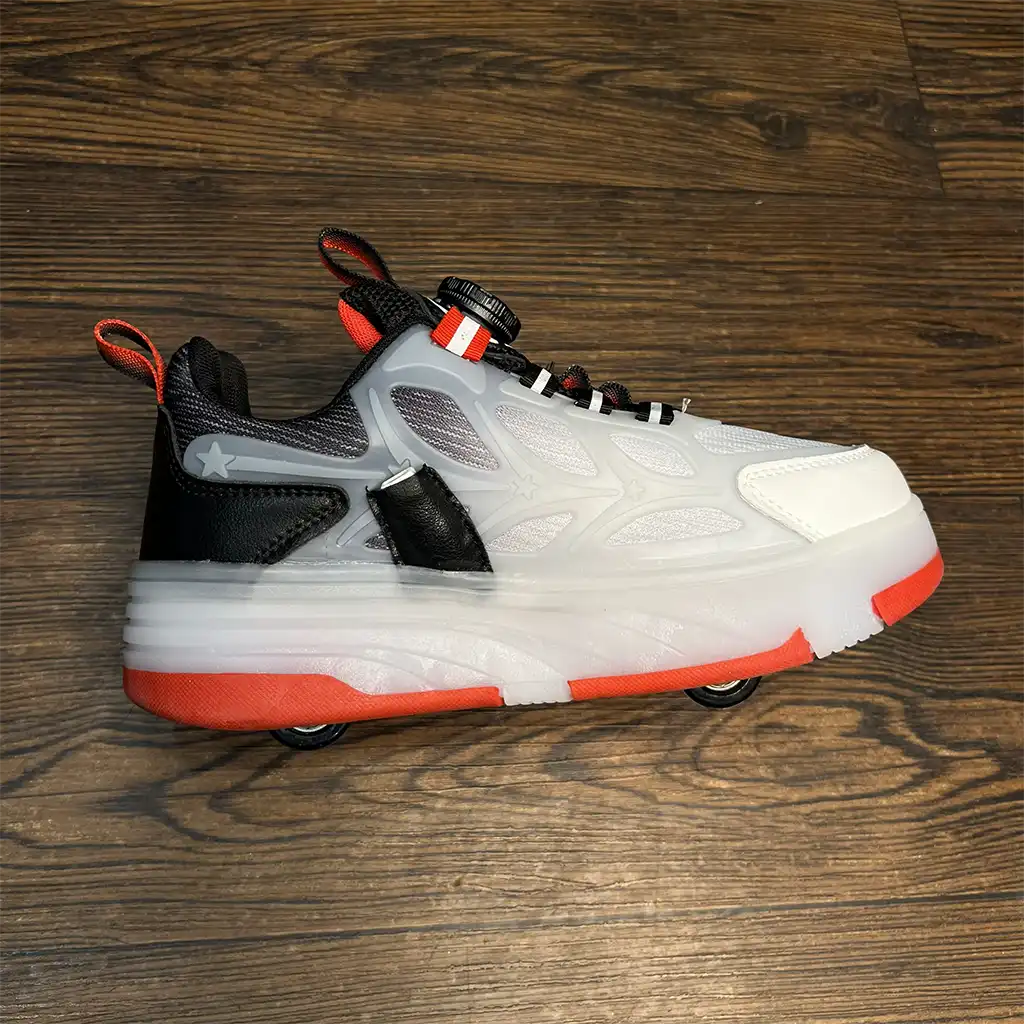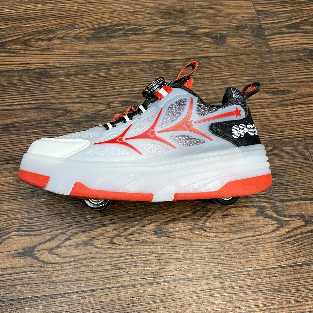 این مدل با الهام از خطوط شعلهای در رنگ قرمز طراحی شده تا حس انرژی و تحرک را منتقل کند. فناوری دوحالته هوشمند به کودک اجازه میدهد تنها با چند حرکت ساده، کفش خود را از یک کتونی روزمره به اسکیت تبدیل کند. چراغهای LED با هر قدم روشن میشوند و زیبایی خاصی به ظاهر کفش میبخشند.