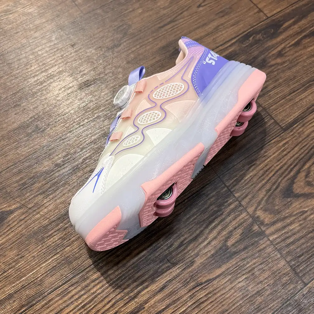 اگر دنبال یک کفش شیک، سادهتر از مدلهای فانتزی کارتونی ولی همچنان پاستلی، جذاب و چشمگیر هستی، این کتونی چرخدار دخترانه سفید–صورتی–بنفش یکی از بهترین گزینههاست. طراحی نرم و مینیمال پاستلی در ترکیب با ساختار اسپرت و مدرن، این مدل را به یک انتخاب ایدهآل برای استفاده روزمره تبدیل کرده است.