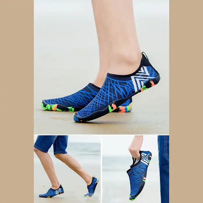 کفش ورزشی مردانه برای ساحل، انتخابی ایده‌آل برای آقایانی است که به دنبال ترکیبی از عملکرد، راحتی و استایل در فعالیت‌های ساحلی و آبی هستند. این کفش با رنگ آبی جذاب، طراحی سبک و خشک‌شونده سریع، برای شنا، موج‌سواری، یوگا، دویدن در ساحل و دیگر فعالیت‌های ورزشی مناسب است. این محصول با ظاهر اسپرت و کاربردی، تجربه‌ای بی‌نظیر در روزهای گرم تابستان فراهم می‌کند. این رنگ قبل استفاده هم برای مردانه و هم زنان است، اما در صورت که دنبال مدلی با رنگ کاملا زنانی هستید می تواندی کفش ساحلی زنانه صورتی را از فروشگاه ما سفارش دهید.