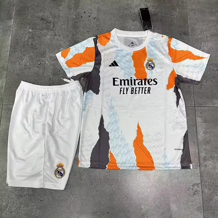 کیت پیش مسابقه 2025 رئال مادرید با طراحی گرافیکی جسورانه و خیرهکننده که به طرح “ابروبادی” معروف است، دقیقاً همین حس را منتقل میکند. این ست با ترکیب رنگهای پرانرژی نارنجی، آبی روشن و خاکستری، فرزند شما را به کانون توجه در زمین بازی تبدیل میکند. این محصول ویژه، جایگاه خاصی در مجموعه لباس فوتبال رئال مادرید ما دارد و برای کودکانی که فوتبالیست شدن را در سر دارند، بهترین انتخاب است.