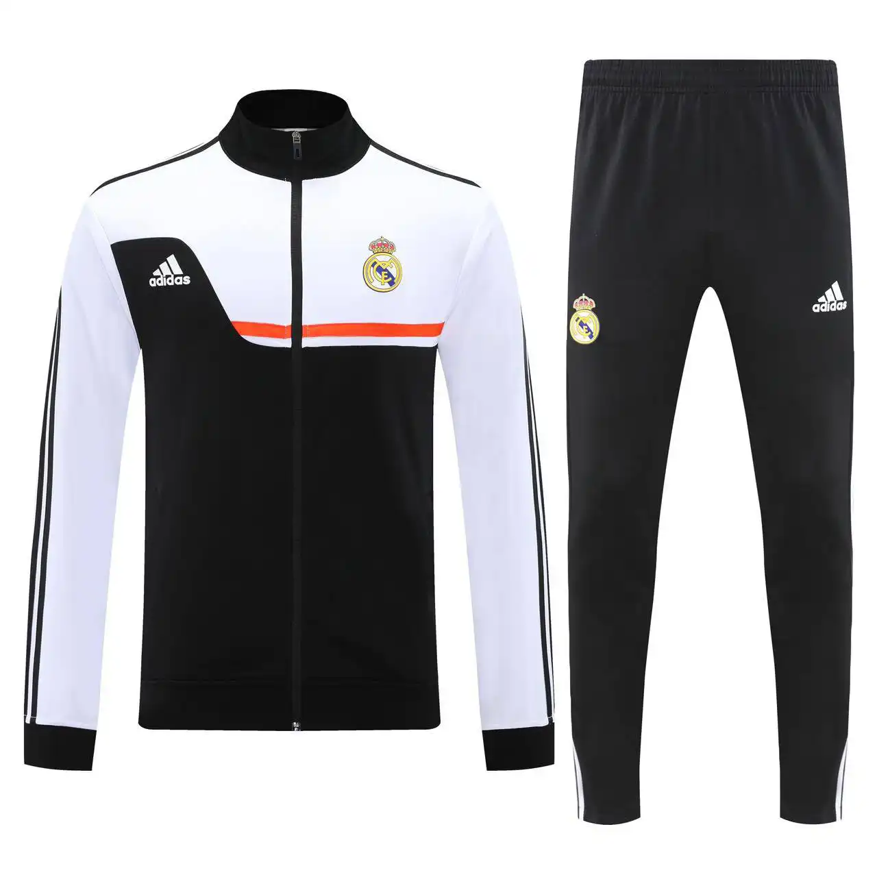 شکوه و ظرافت باشگاه رئال مادرید را با ست تمرینی فصل 2026 تجربه کنید. این ست با طراحی بینظیر آدیداس، تضاد کلاسیک رنگهای مشکی و سفید را به شکلی مدرن به نمایش میگذارد. بخش اصلی گرمکن به رنگ مشکی قدرتمند و آستینها به رنگ سفید نمادین “لوس بلانکوس” طراحی شدهاند. اما نقطه عطف این طراحی، نوار افقی نارنجی رنگی است که با جسارت، این دو رنگ را از هم جدا کرده و انرژی و پویایی خاصی به لباس بخشیده است. این محصول یک های کپی درجه یک تایلندی است که با دقت و کیفیتی فوقالعاده، احساس پوشیدن لباس رسمی تیم را به شما میدهد.