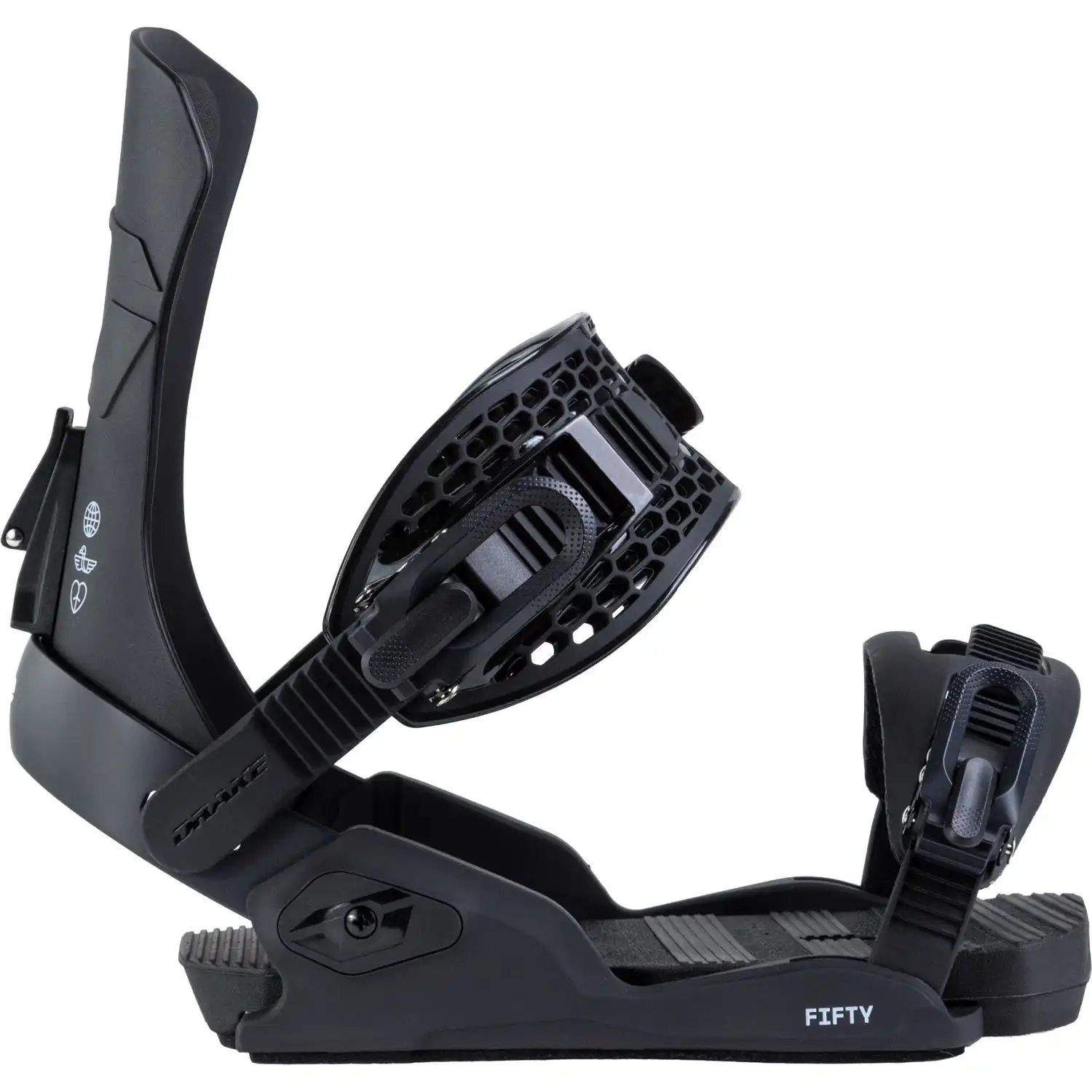 - هیلکاپ آلومینیومی: بر خلاف فیکسهای تمام پلاستیکی رقبا، Fifty در قسمت پاشنه از آلومینیوم استفاده میکند. این یعنی وقتی روی پاشنه فشار میآورید، فیکس “خم” نمیشود و تمام نیرو مستقیماً به لبه برد منتقل میشود.
