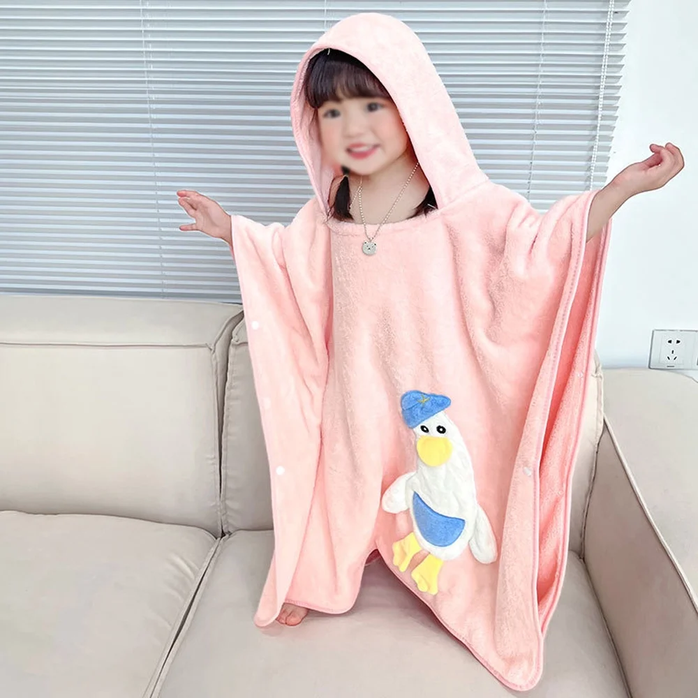 طراحی پانچویی کلاهدار باعث میشود کودک بهراحتی حوله را بپوشد و همزمان سر و بدنش خشک بماند. رنگ صورتی ملایم با ظاهر کودکانه، انتخابی محبوب برای استفاده در خانه، استخر، مهدکودک و سفر است.